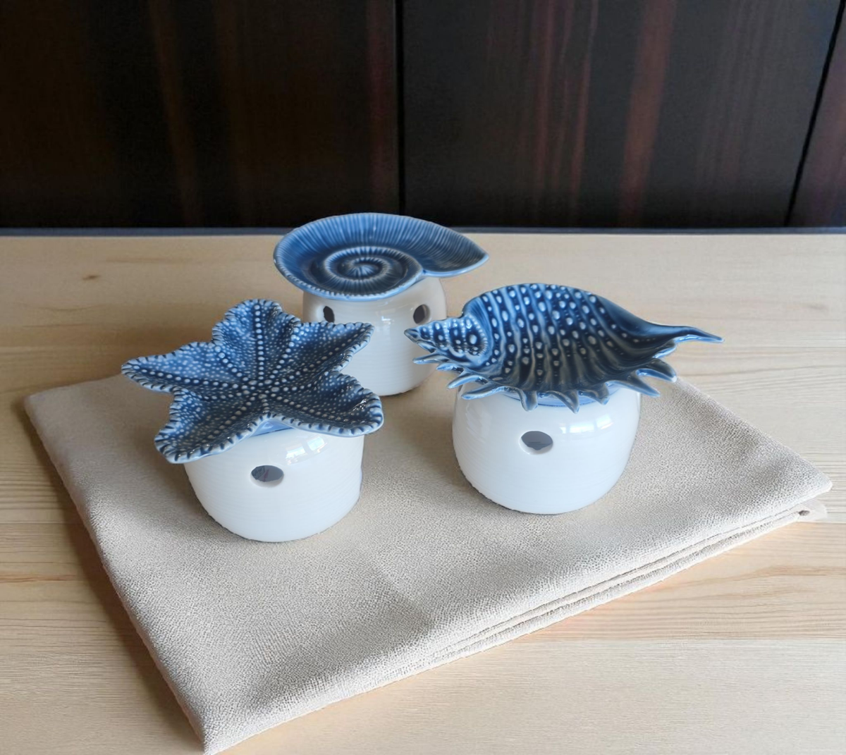 🌊 Collection bord de mer – Trio de brûle-parfums en céramique 🐚