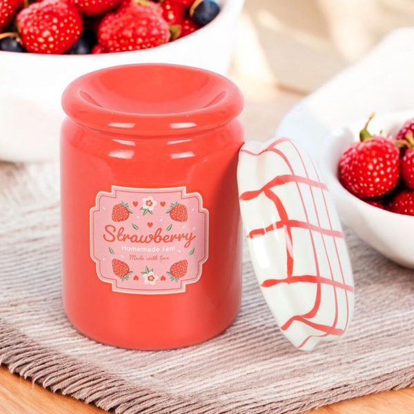 Brûle-parfum en forme de pot de confiture vintage. Version fraise