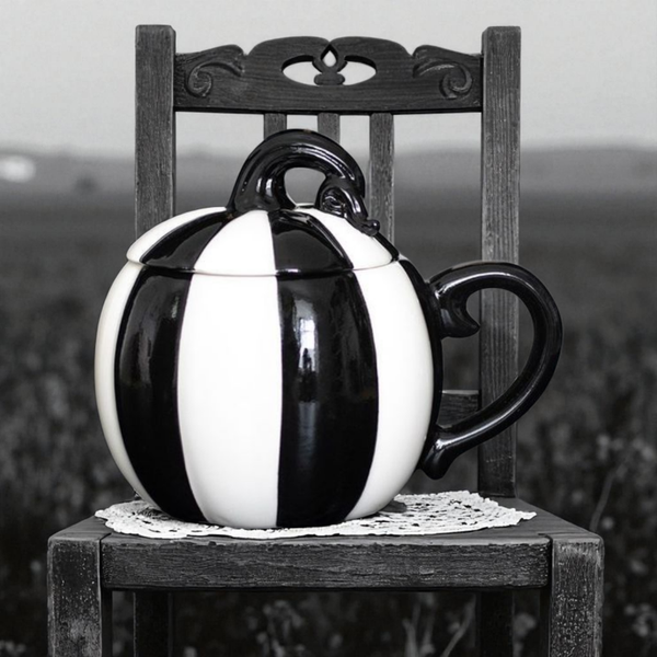 Ce mug original en forme de citrouille rayée noir et blanc ne passe pas inaperçu. Sa forme généreuse et son couvercle assorti en font un objet à la fois pratique et décoratif. Que ce soit pour déguster une boisson chaude ou pour agrémenter une déco d’automne ou d’Halloween, ce mug est parfait pour les amateurs d’objets uniques et stylés.
