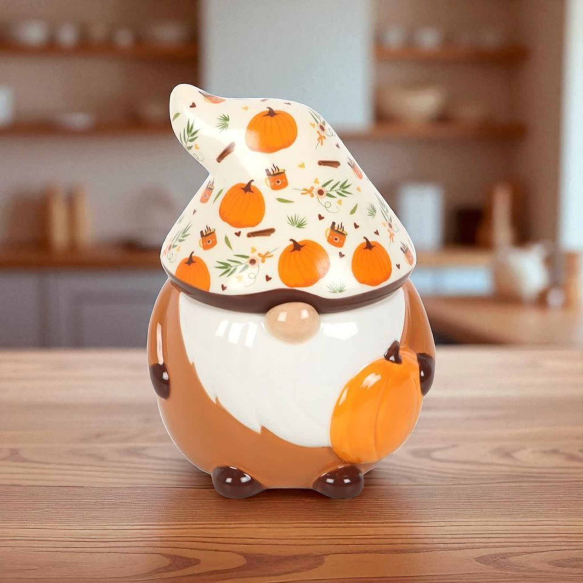 Apportez une touche de fantaisie à votre intérieur avec ce brûle-parfum en céramique représentant un adorable petit gnome tenant une citrouille, coiffé d’un chapeau décoré de motifs automnaux. Son design original et ses découpes en forme d’étoiles à l’arrière créent une douce lumière d’ambiance, idéale pour les soirées cocooning. Retirez le chapeau avant utilisation pour profiter pleinement de vos fondants parfumés ou huiles parfumées.