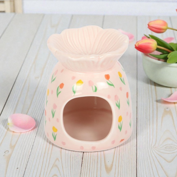 Comme un petit jardin en fleurs posé dans votre intérieur, ce brûle-parfum en céramique décoré de tulipes colorées apporte instantanément une note douce, fraîche et lumineuse à votre décoration.